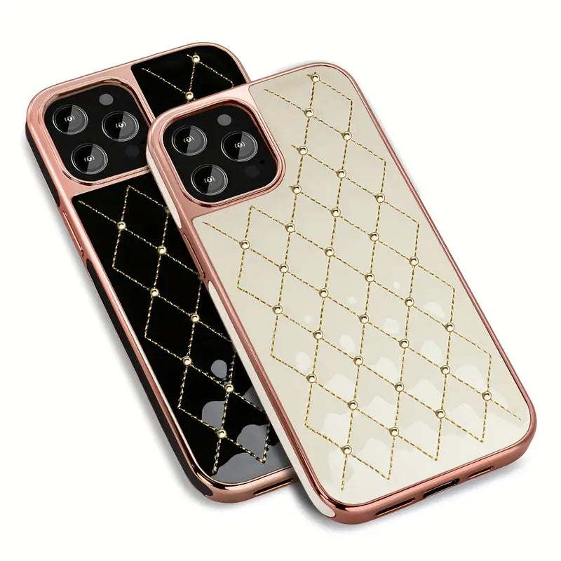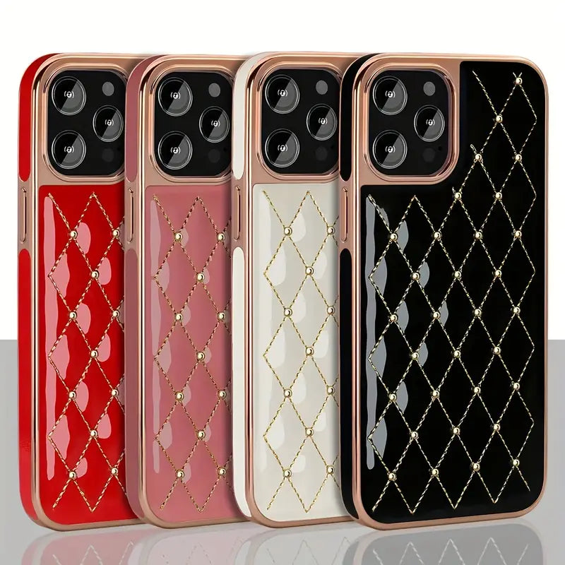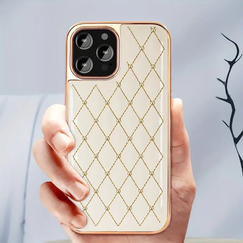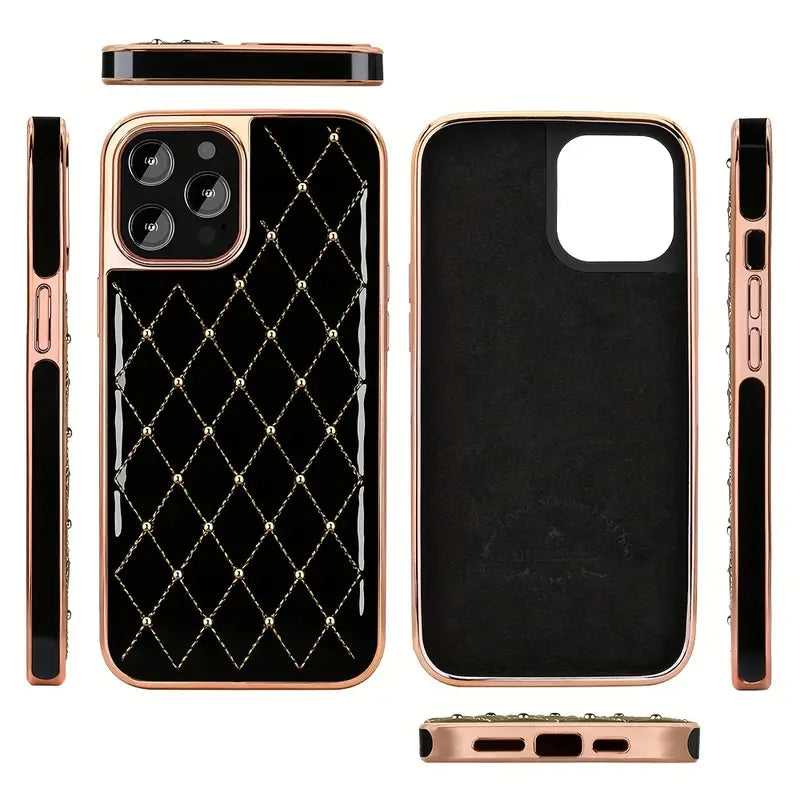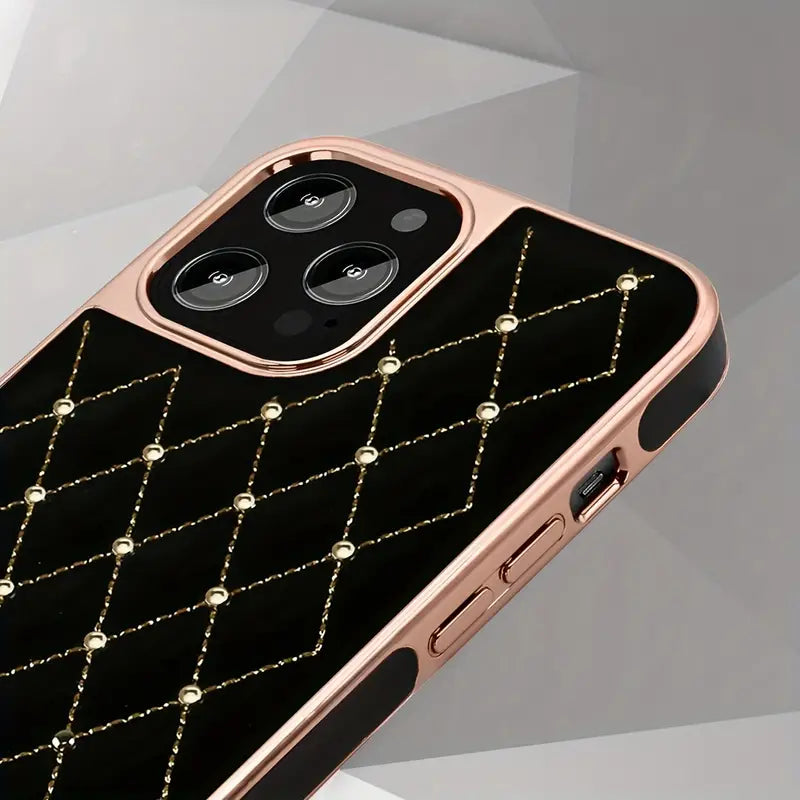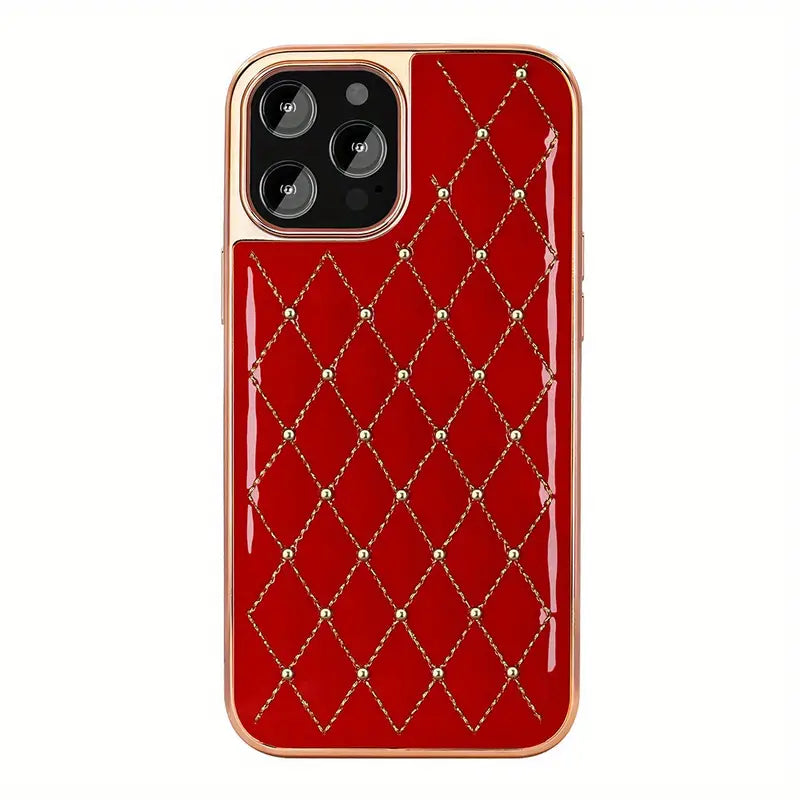 Gold Plated Embroidered Beads Leather Case for iPhone