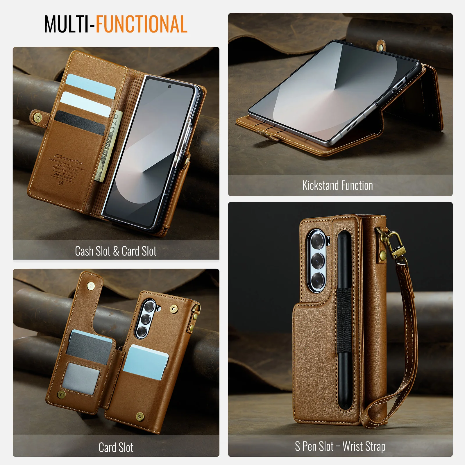 Retro Vintage Luxury Leather Case With Card Slots S-pen Holder For Samsung Galaxy Z Fold Series