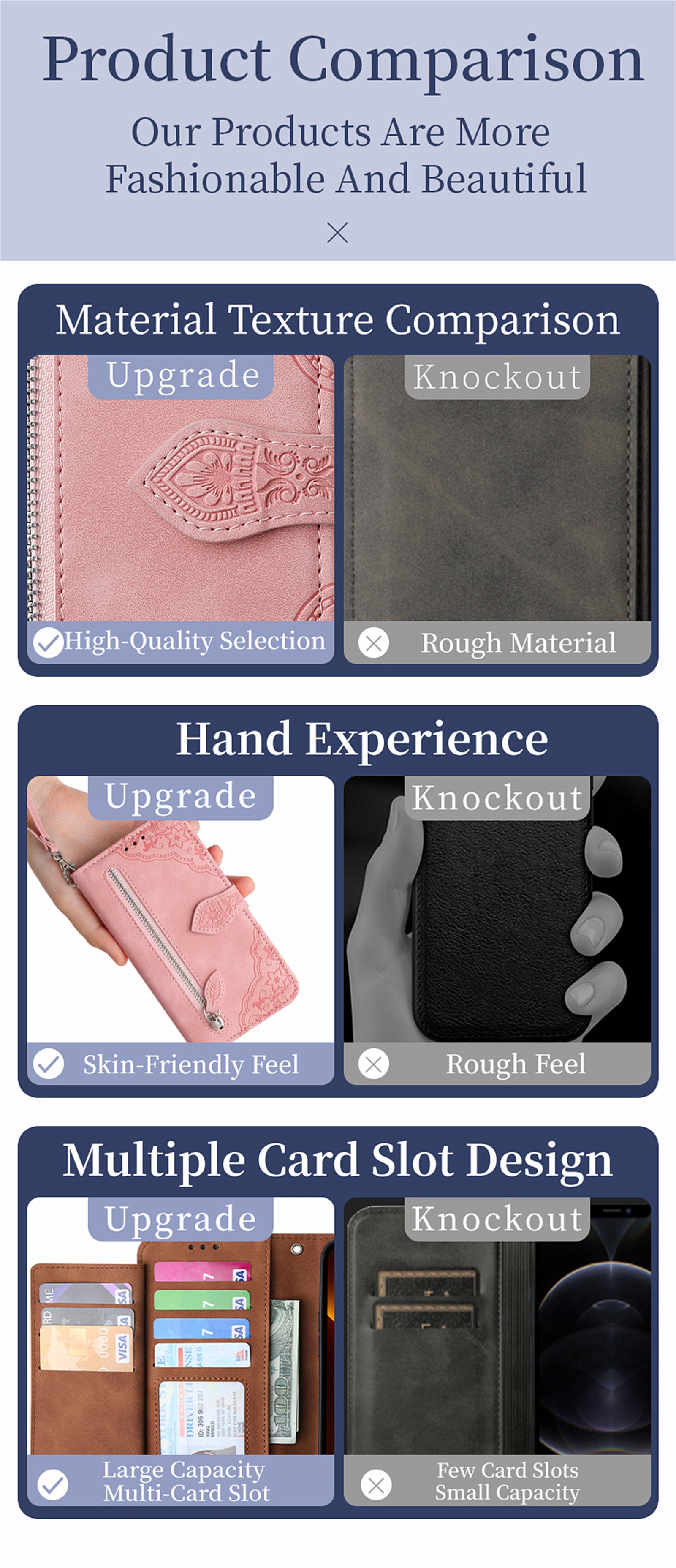 - [Wallet Case Design] Perfect Combination of a wallet and cell phone case ,With id Credit Card Slots, it can be used as wallet to keep multi credit cards, cash, ID, and money
